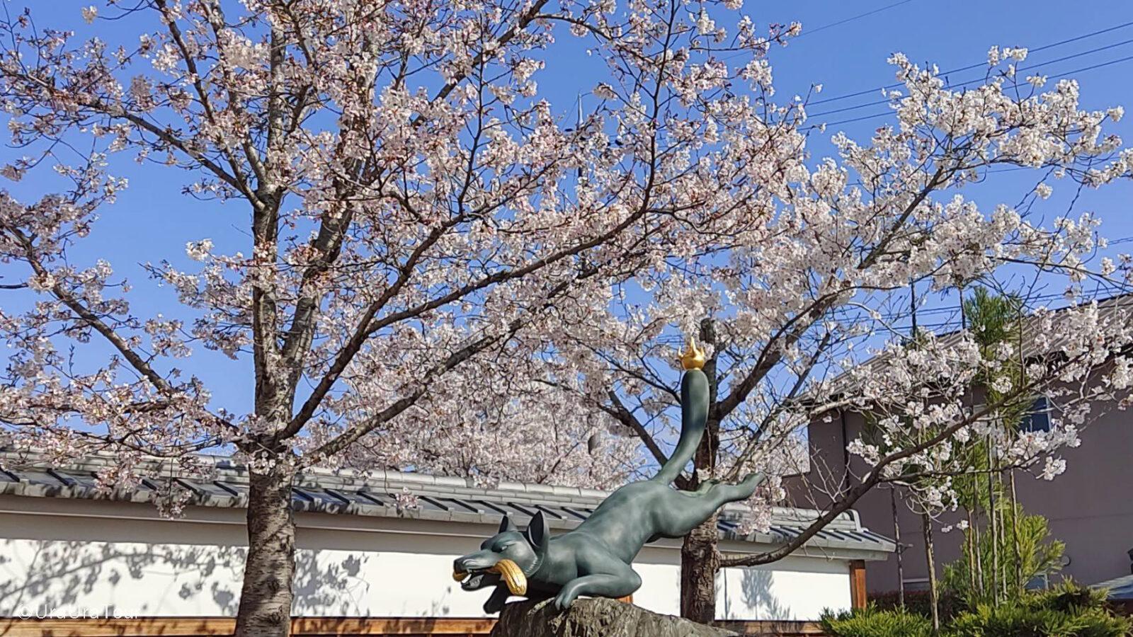 伏見稲荷大社創建の歴史をご案内するのはもちろんですが、この季節の朱の鳥居と桜の華やかなピンクとの景観をご覧いただきました。